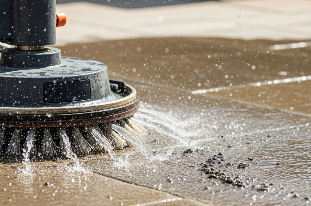 Wir reinigen Stein- und Plattenflächen gründlich und schonend – ganz ohne Schäden.