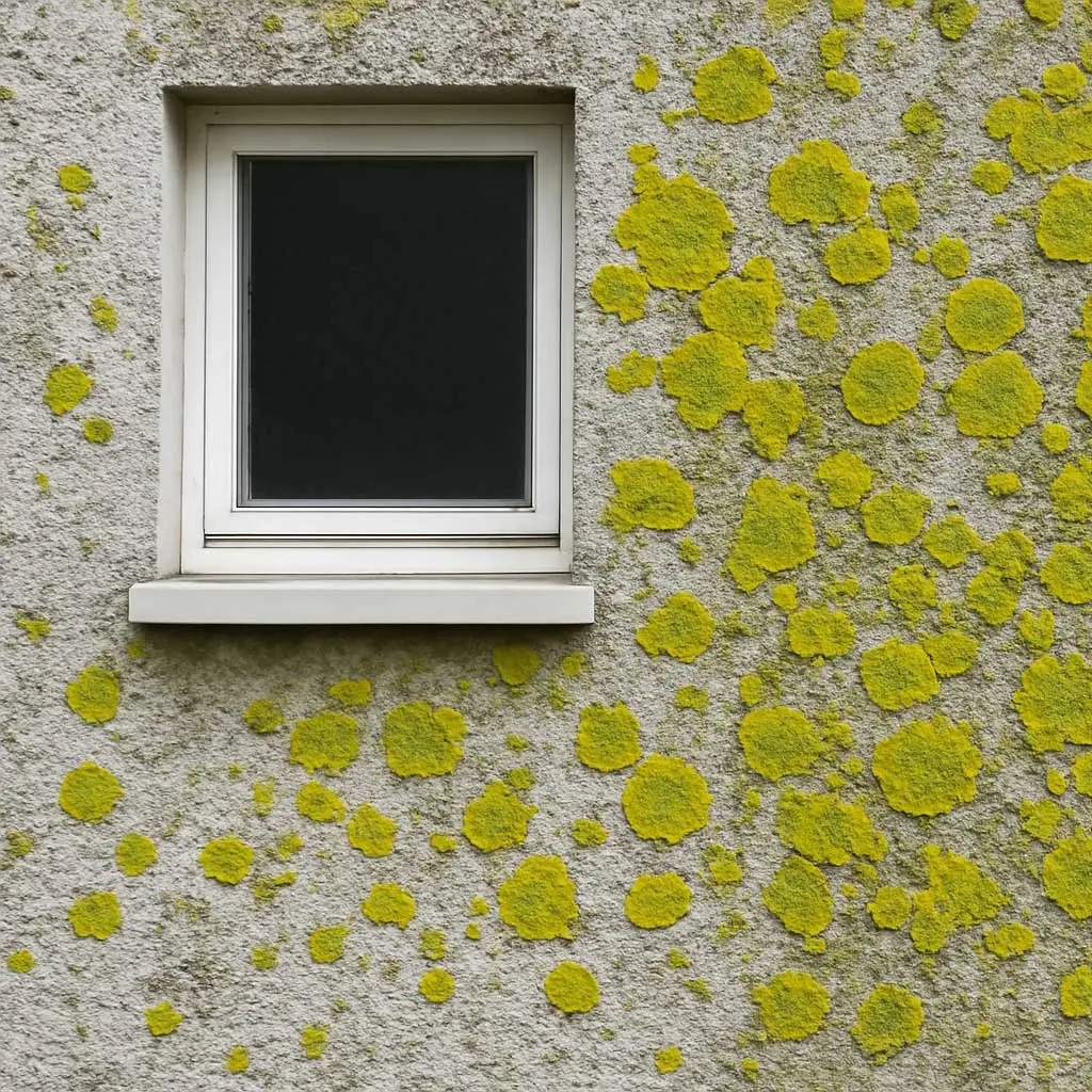 Bilden sich bei Feuchtigkeit und Schatten, vor allem auf poröser Oberfläche. Flechten dringen tief ein und verursachen Risse. -